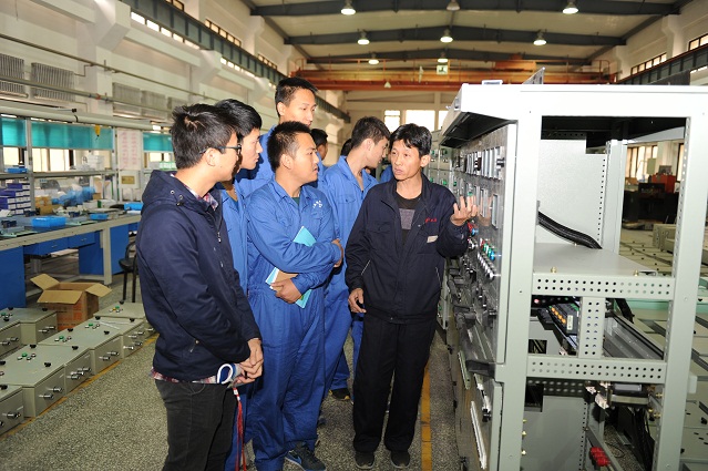 在周二做完早操,船舶公司的副總經(jīng)理帶我們來到車間。在這個車間里,我看到了一套完整的駕控臺,甚是震驚,因為在學(xué)校一直學(xué)習(xí)的是理論知識,偶爾在書本上電腦上看見駕控臺的圖片,如今一套完整的駕控臺在我面前,讓一個從小擁有船長夢的孩子多么歡喜。上午,副總耐心的給我們講解駕控臺的每一個零件的功能和操作,我聽得仔仔細(xì)細(xì),恨不得將每一個零件銘記于心。在接下來的幾天,部長師傅讓我們認(rèn)識了很多公司生產(chǎn)的零件。由于我們才接觸最基本的專業(yè)課,師傅講的很多我們都不太懂,師傅都細(xì)心地給我們解釋,在校外也能有這么負(fù)責(zé)的老師進(jìn)行細(xì)心輔導(dǎo),真的感覺我們實在是幸運了。特別是當(dāng)知道老師為了上午給我們講課,每天晚上都得加班把當(dāng)天的工作給完成,驚嘆之余,我更多的是